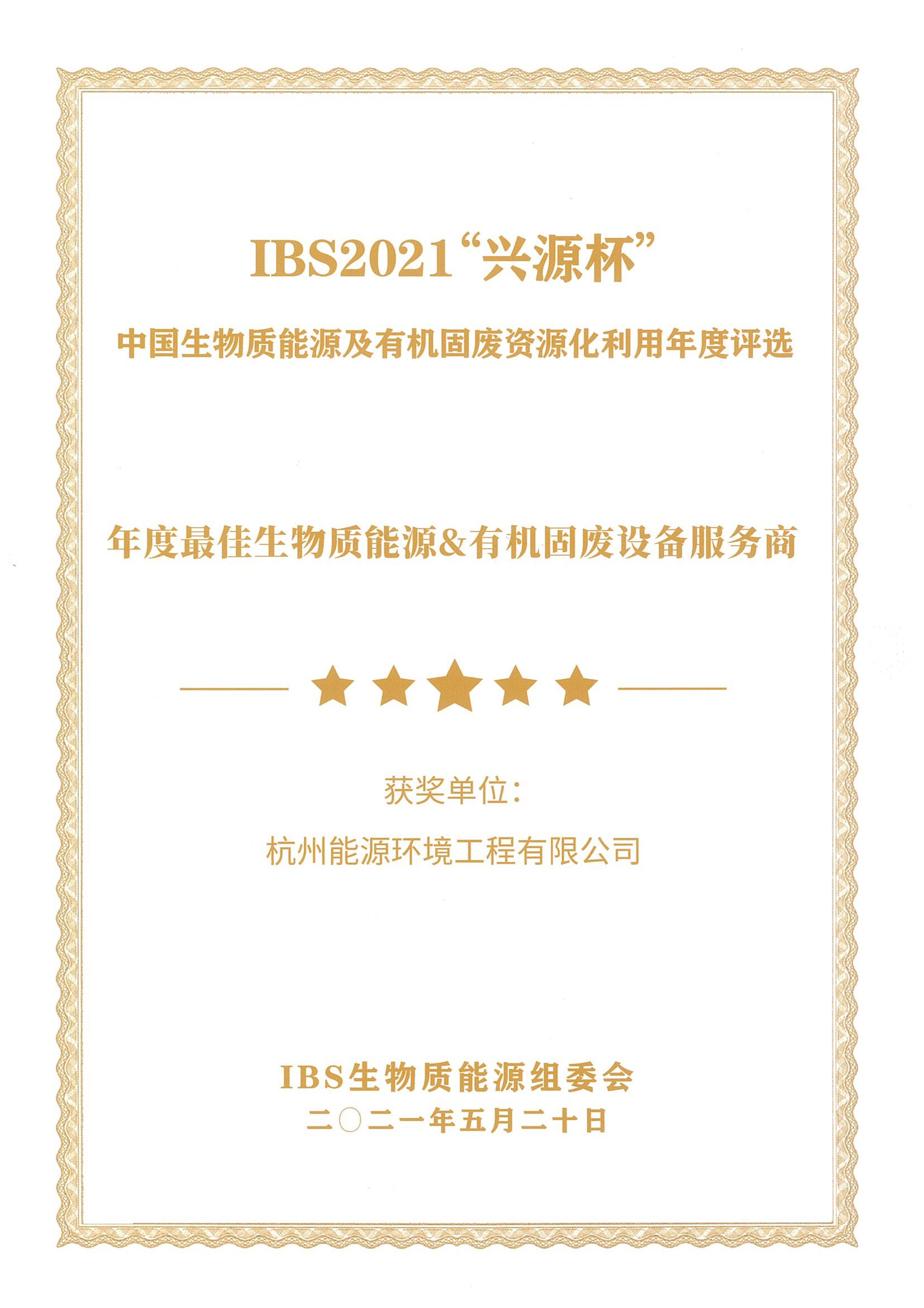 In the IBS 2021 "Xingyuan Cup" China Biomass Energy and Organic Solid Waste Resource Utilization Annual Selection, HEEE was awarded the title of "Best Biomass Energy & Organic Solid Waste Equipment Service Provider of the Year".