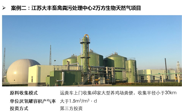大型集中式畜禽養(yǎng)殖廢棄物處理模式主要有三大特點(diǎn):一是糞污統(tǒng)一收集、集中處理;二是,第三方專業(yè)公司加入的商業(yè)化模式;三是全產(chǎn)業(yè)鏈統(tǒng)籌推進(jìn)。通過“專業(yè)的人做專業(yè)的事”,整合多種技術(shù)模式,實(shí)現(xiàn)產(chǎn)品多元化利用,使沼氣工程中物質(zhì)流、能量流及利益流合理健康運(yùn)轉(zhuǎn),沼氣工程本身具備造血功能,并能進(jìn)行商業(yè)化復(fù)制。壽總報(bào)告中以山東民和日產(chǎn)100,000m3雞糞沼氣項(xiàng)目、江蘇大豐畜禽糞污處理中心20,000m3生物天然氣項(xiàng)目、新疆呼圖壁中廣核36,600m3沼氣提純項(xiàng)目、中糧集團(tuán)江蘇金東臺2MW豬糞熱電肥聯(lián)產(chǎn)項(xiàng)目4個(gè)項(xiàng)目為例,從原料收集、沼氣高值利用、沼肥高值利用、經(jīng)濟(jì)效益等方面闡明了大型集中式畜禽養(yǎng)殖廢棄物處理模式的運(yùn)行機(jī)制和技 術(shù)優(yōu)勢,這些成功案例表明該模式技術(shù)可行、可復(fù)制、易推廣,有效促進(jìn)區(qū)域內(nèi)畜禽養(yǎng)殖廢棄物資源化利用。