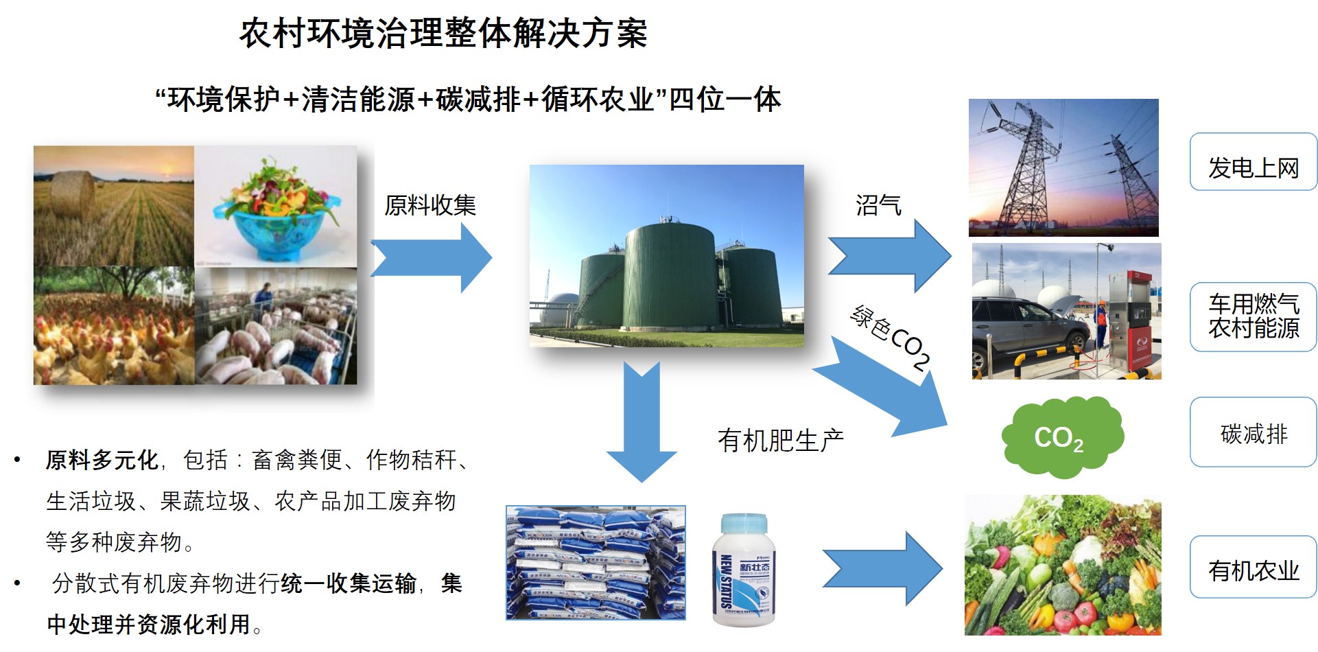 杭能環(huán)境的農(nóng)村環(huán)境治理整體解決方案,致力于統(tǒng)一收集分散的有機(jī)農(nóng)業(yè)廢棄物進(jìn)行資源化利用,可覆蓋畜禽糞便、作物秸稈、生活垃圾、果蔬垃圾、農(nóng)產(chǎn)品加工廢棄物等多種原料,形成“環(huán)境保護(hù)+清潔能源+碳減排+循環(huán)農(nóng)業(yè)”四位一體的農(nóng)業(yè)新格局,助力國家“田園綜合體”和“美麗鄉(xiāng)村”建設(shè)。