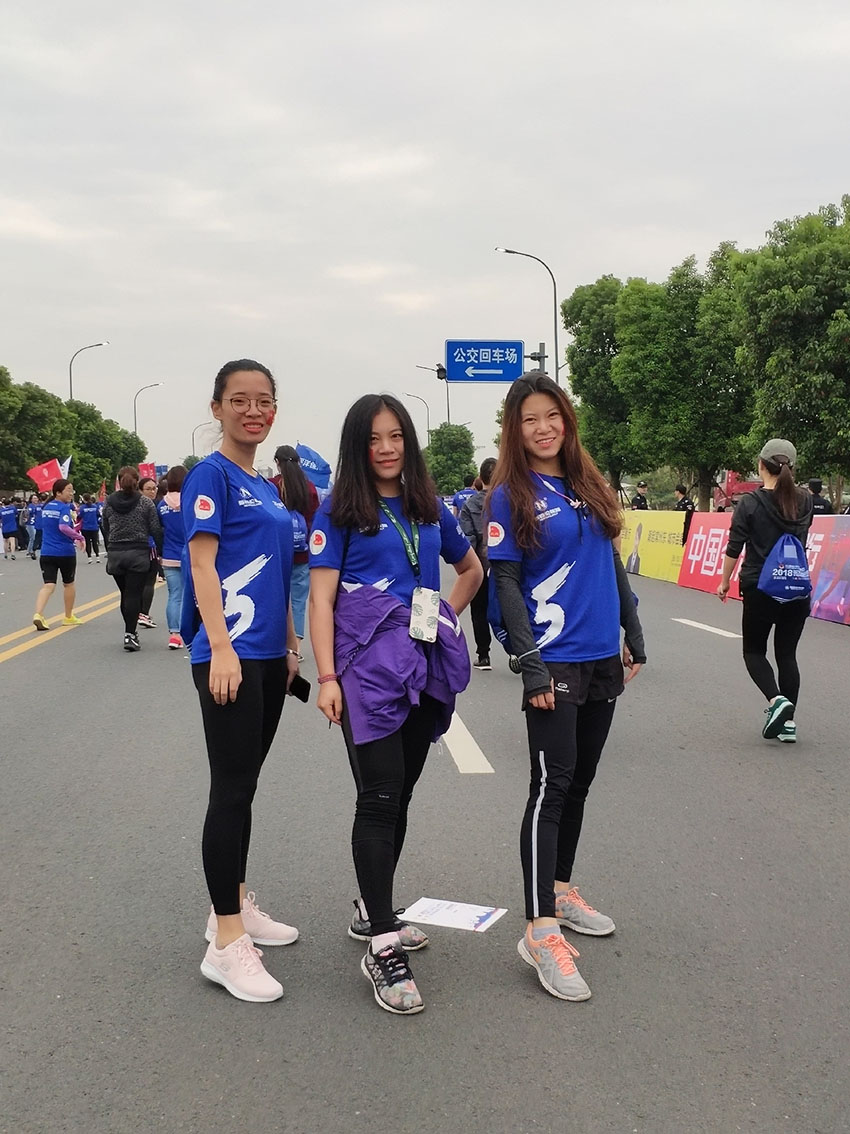 8:30,隨著一聲槍響,本屆常馬正式開跑。杭能奔跑團的成員們,身穿藍色戰(zhàn)袍,融匯在在兩萬多人聚成的人海之中,從起跑線上沖出。調(diào)整跑速、調(diào)節(jié)呼吸,用活躍激昂的心態(tài)激勵彼此,按照自己的節(jié)奏有條不紊地前進著。