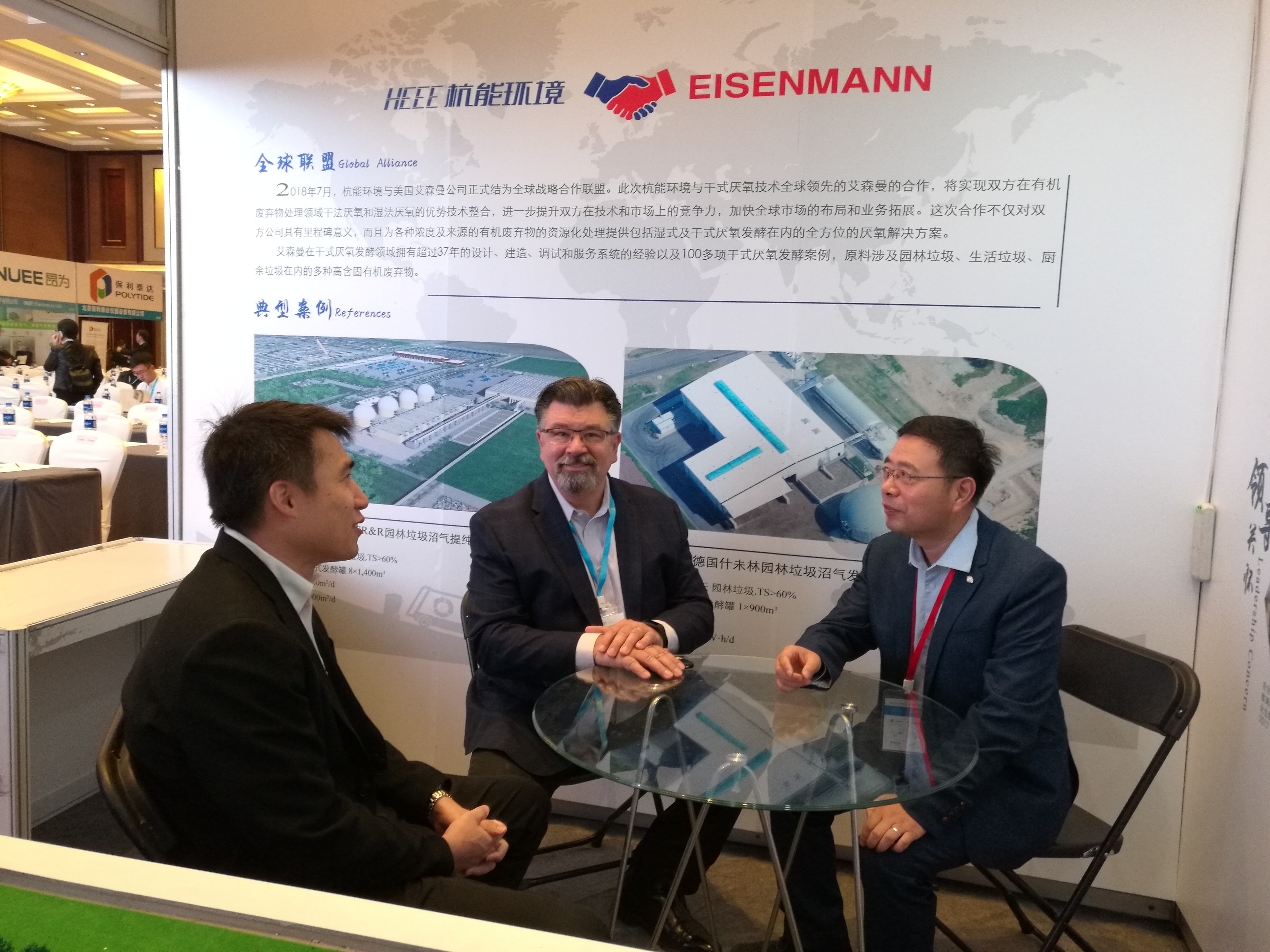 杭州能源環(huán)境工程有限公司董事長周麗燁、總經(jīng)理壽亦豐應(yīng)邀參加本屆盛會。杭能環(huán)境總經(jīng)理壽亦豐在大會上做了題為“多元有機廢棄物高效厭氧發(fā)酵技術(shù)與工程實踐”的報告,并主持了主題為“沼氣發(fā)酵工程與調(diào)控”的分會場。杭能的干式厭氧技術(shù)合作伙伴德國Eisenmann 公司全球銷售總監(jiān)Chris也應(yīng)邀參與本次年會。