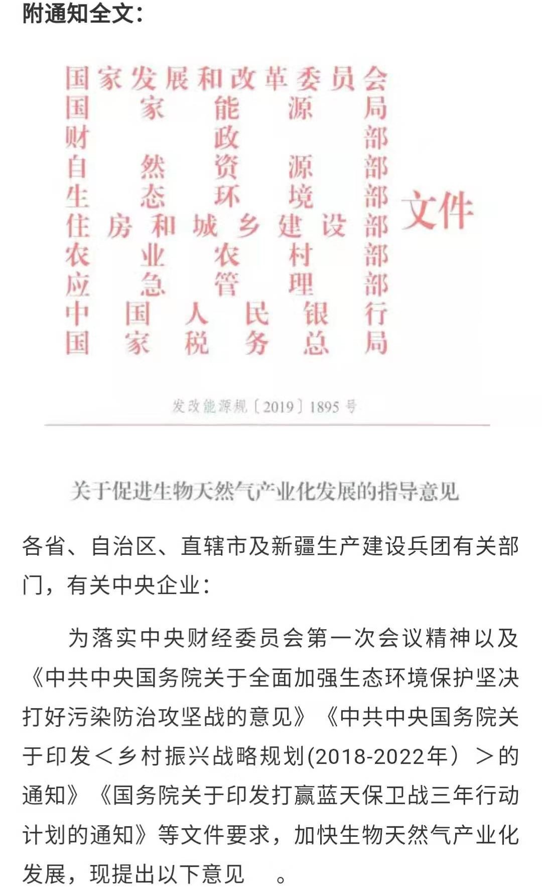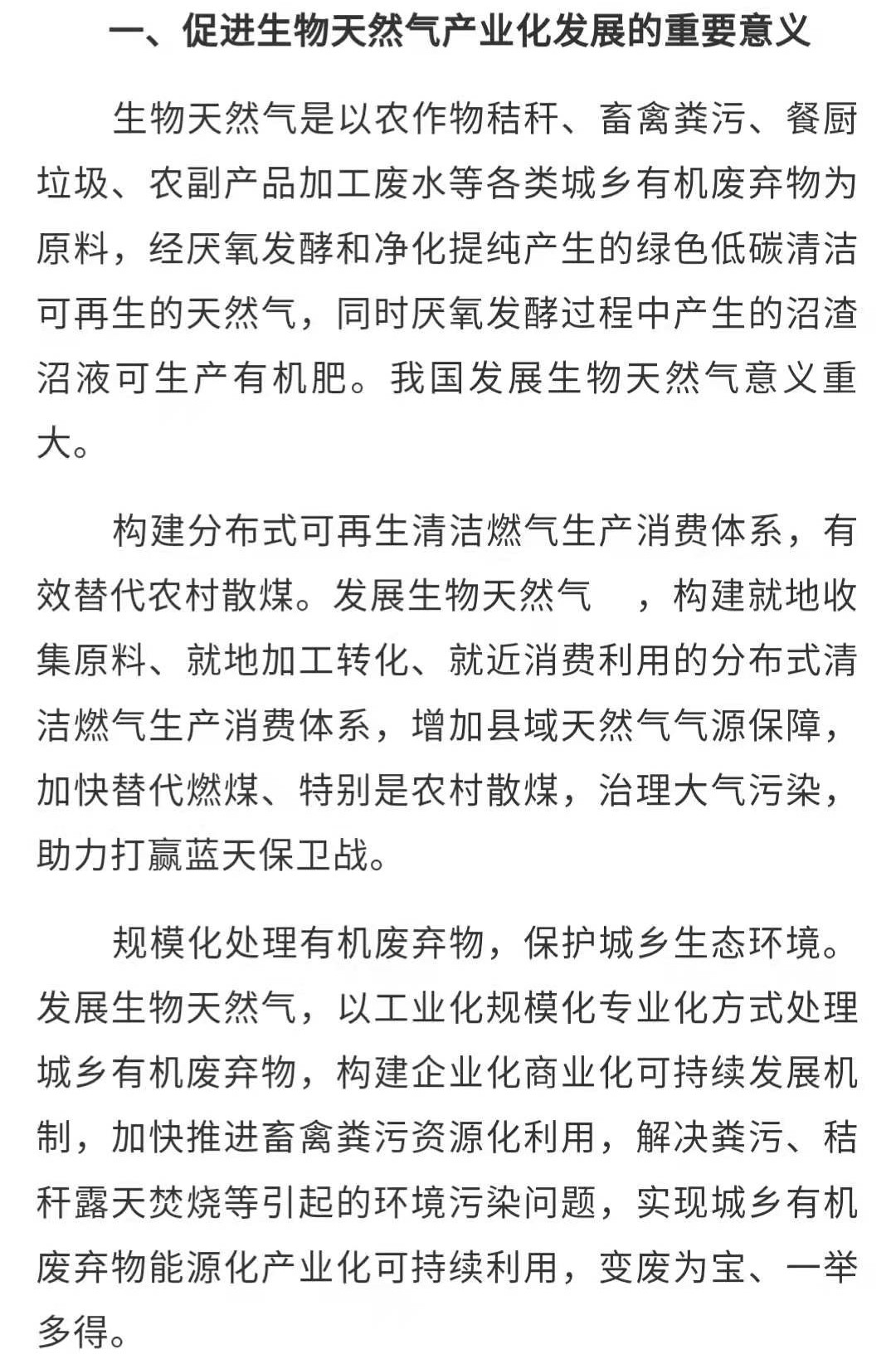 關于促進生物天然氣產業(yè)化發(fā)展的指導意見